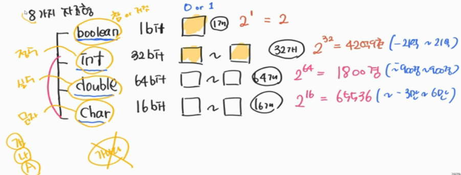 자바에서는 총 8가지의 자료형이 있습니다. 즉, 창고에 담을 8가지의 과일 종류가 있다는 얘기가 됩니다.