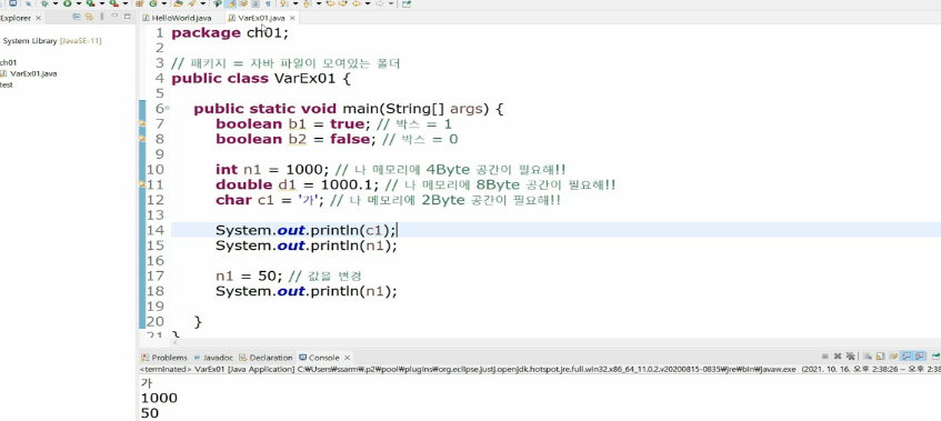 자바는 신기하게도 선언했던 값을 아주 쉽게 변경할 수 있습니다.
