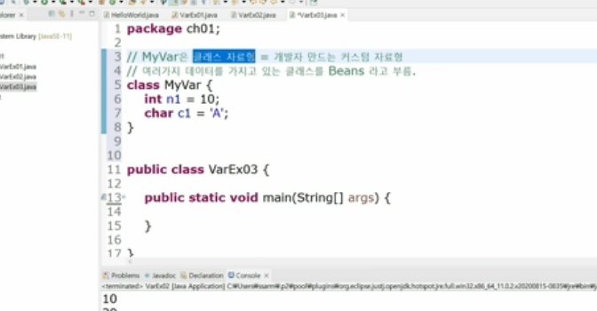 이처럼 MyVar를 보시면 int타입, char타입 둘 다를 선언할 수 있습니다.