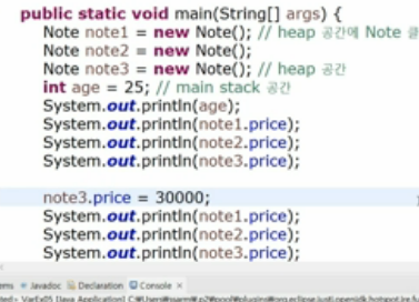 main안에 있기 때문에 Stack에 저장됩니다. new Note는 heap에 저장되는 반면, main내부에서 선언된 변수 age는 Stack에 저장된다는 특이한 점을 지니고 있습니다. 정말 신기하죠???