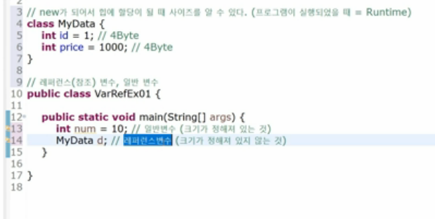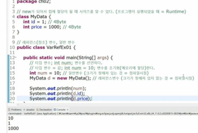 이렇게 MyData에서 이 d라는 변수를 갖고왔을 때를 레퍼런스변수라고 합니다.