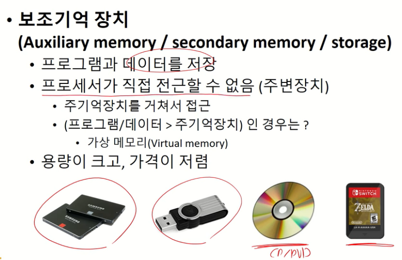 보조기억장치에서는 프로세서가 직접 접근할 수 없습니다.