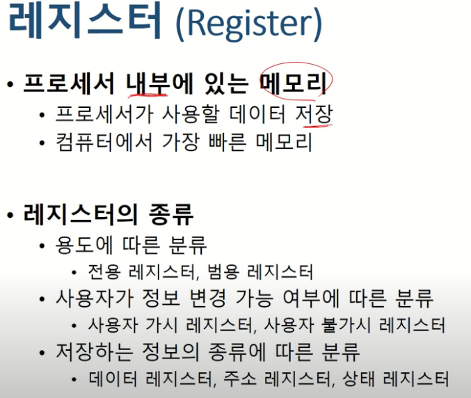 아래에 보시면 CPU 내부에 레지스터라고 있습니다. 레지스터란 프로세서 내부에 있는 메모리입니다.]