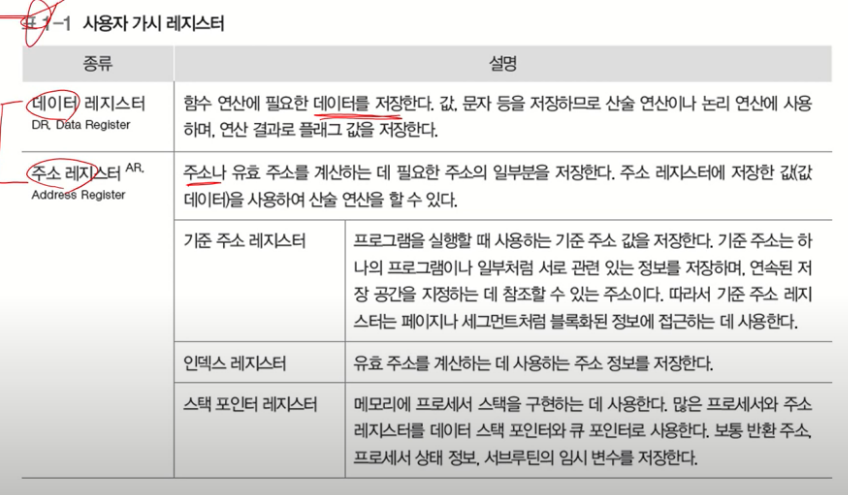 데이터 레지스터는 주로 데이터를 저장하는데 사용되고 주소 레지스터는 주소나 필요한 주소의 일부분만 저장한다는 부분을 기억해주시면 좋을 것 같습니다.