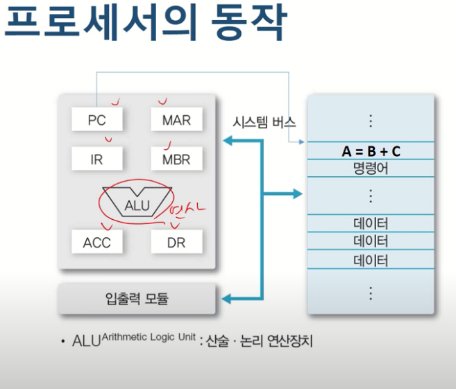 프로세서는 이처럼 여러 레지스터의 역할 수행으로 명령어가 입력되는 것을 알고 계시면 좋겠습니다.