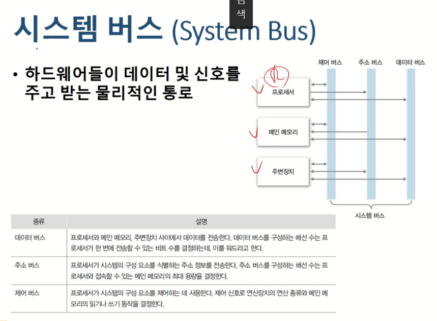 다양한 자원들, 주변장치, 리소스들이 같이 일을하려면 대화를 나누어야 하는데 이 통신을 하는 통로를 우리는 시스템버스라고 부릅니다. 즉, 하드웨어들이 데이터를 주고받는 물리적인 통로를 뜻합니다.