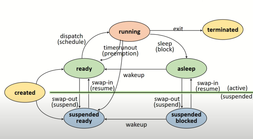 그래서 만약 메모리가 여유가 있다면 ready가 될 것이고 없다고 한다면 suspended ready로 들어갑니다.