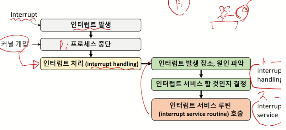 그럼 커널이 개입하여 인터럽트가 어디서 발생하였고 왜 발생했는지 원인을 알아야 합니다.