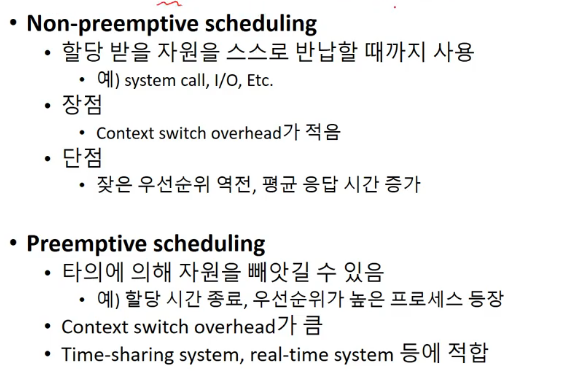 그리고 선점 스케줄링은 타의에 의해 자원을 빼앗길 수 있습니다.
