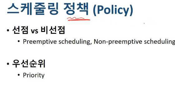 즉, 스케줄링을 어떤 방법으로 설명할 것인가를 스케줄링 정책이라고 합니다.