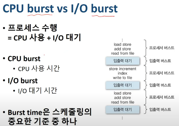 따라서 Burst time은 스케줄링의 기준에서 중요한 기준 중 하나로 손꼽힙니다.