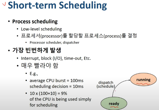 다시 정리하면 Short-term 스케줄링이라는 것은 Process 스케줄링이고 정말 중요한 부분입니다.