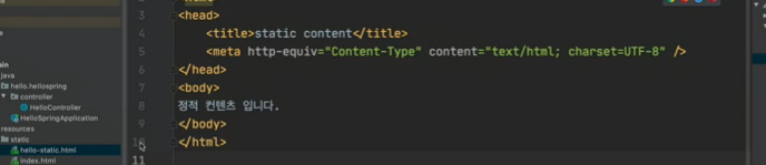 하지만 저희는 hello-static이라는 컨트롤러는 따로 만들지 않고 오로지 html파일만 만들었습니다.
