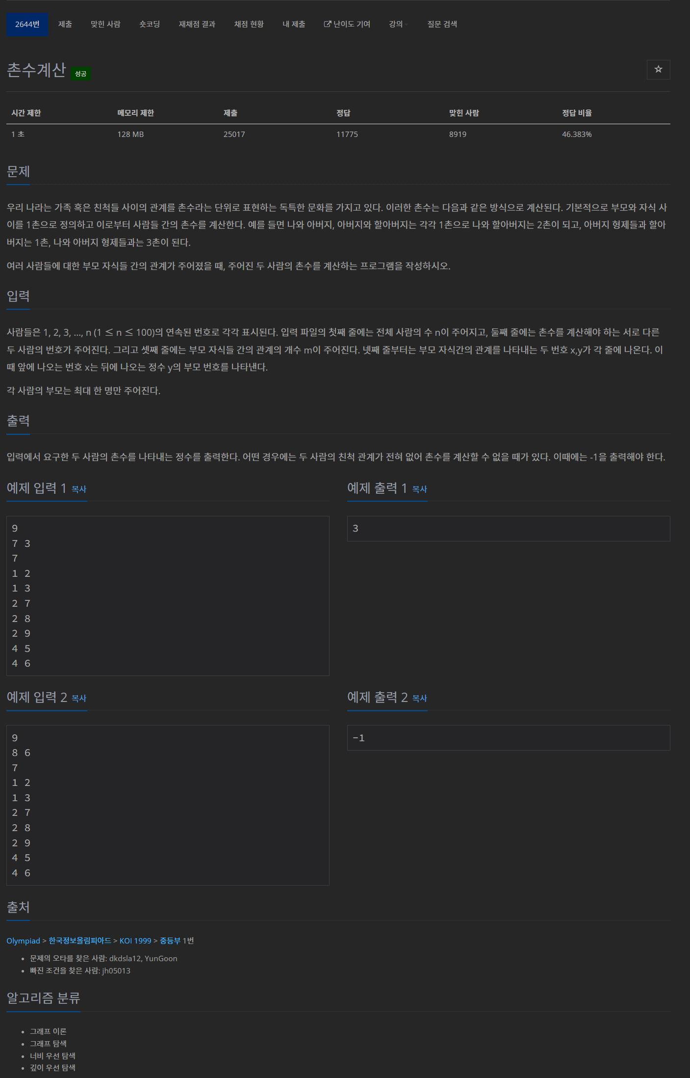 즉, -1을 출력할 때는 적합한 now.x == m이 되는 경우가 없다는 얘기이므로 이는 친인척관계가 아니라는 얘기가 되겠습니다.