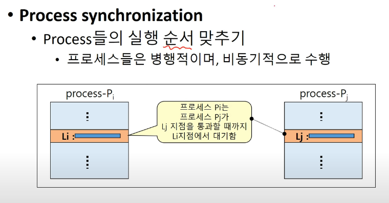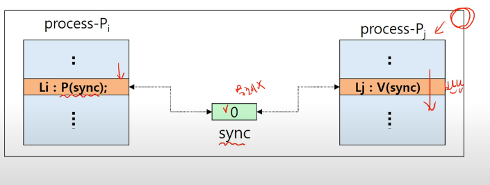 그림에서 나와있는 것처럼 Pi는 Pj가 Lj지점을 통과할 때 까지 Li지점에서 대기하도록 OS에서 지원합니다.