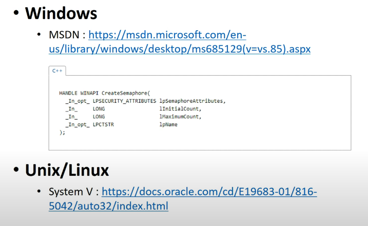 실제 위의 windows사진을 보시면 Create뒤에 세마포어 붙어있는걸 보시면, 실제로 운영체제에 어떤 솔루션이 사용되고 있는지 알 수 있습니다.