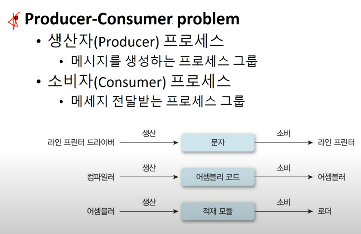 오른쪽의 라인 프린터, 어셈블러, 로더를 소비자 프로세스라고 해봅시다.