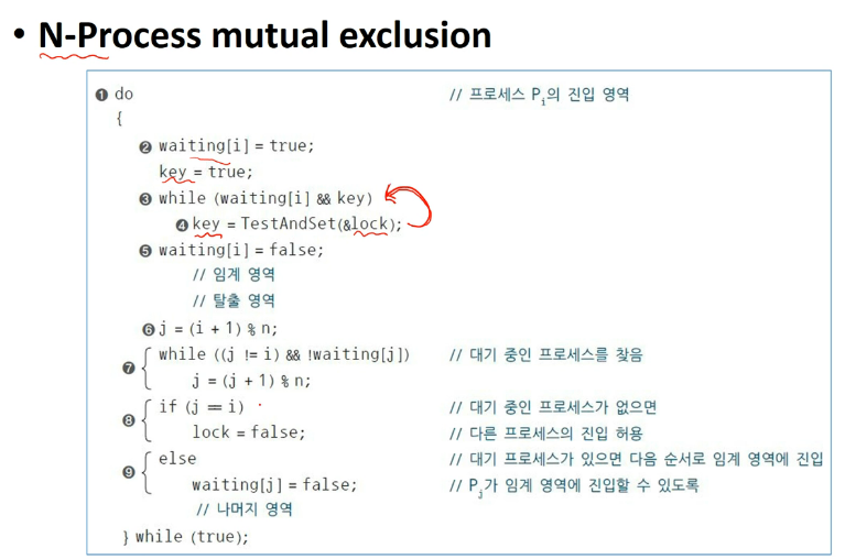 그러므로 이를 해결하기 위해 N개의 프로세스를 처리하는 ME와 TAS Instruction가 등장합니다.