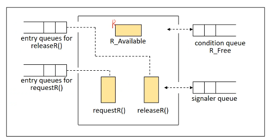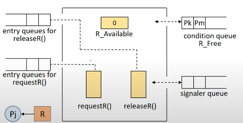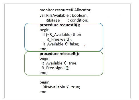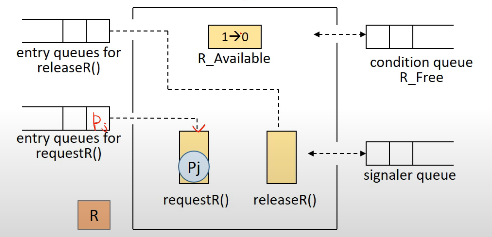 이 R을 책이라고 할 때, 왼쪽의 releaseR()과 requestR()을 각각 procedure 즉, function이 되겠습니다.
