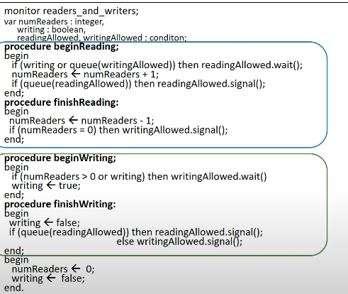 그리고 그렇지 않다면 numReaders 즉, 읽는 사람을 +1 해주고 reading이 허락되었는지 여부를 확인 후 확인이 되었다면 readingAllowed에게 signal()을 줍니다.