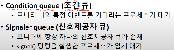 따라서 모니터에는 굳이 신호제공자 큐가 여러 개 존재할 필요가 없습니다.
