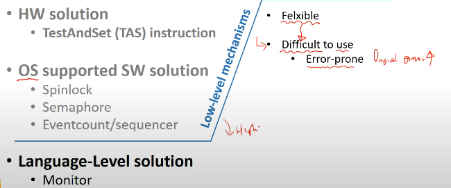 확실히 세마포어, eventcount 등의 솔루션보다 훨신 쉽고 error가 발생 가능성이 적습니다.