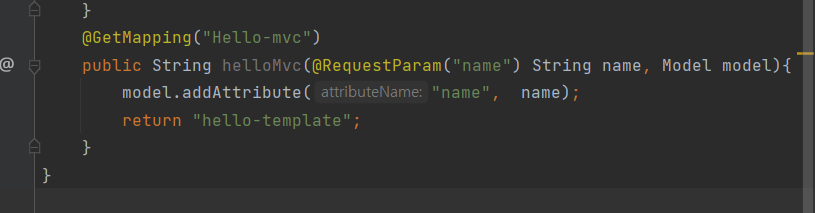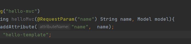 이 파라미터는 String 타입의 name이라는 변수로 가져올 것이고 Model에 담으면 View에서 렌더링할 때 쓸 수 있습니다.