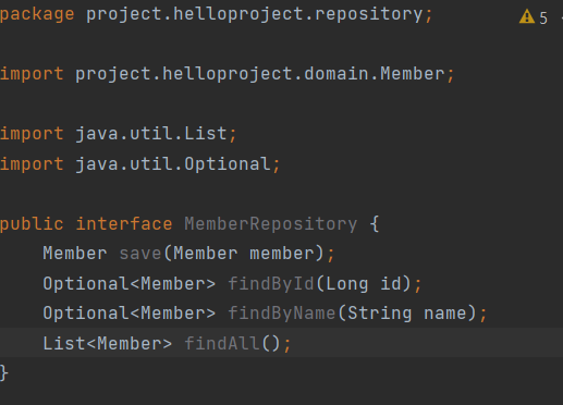 MemberRepository라는 인터페이스를 생성했습니다.