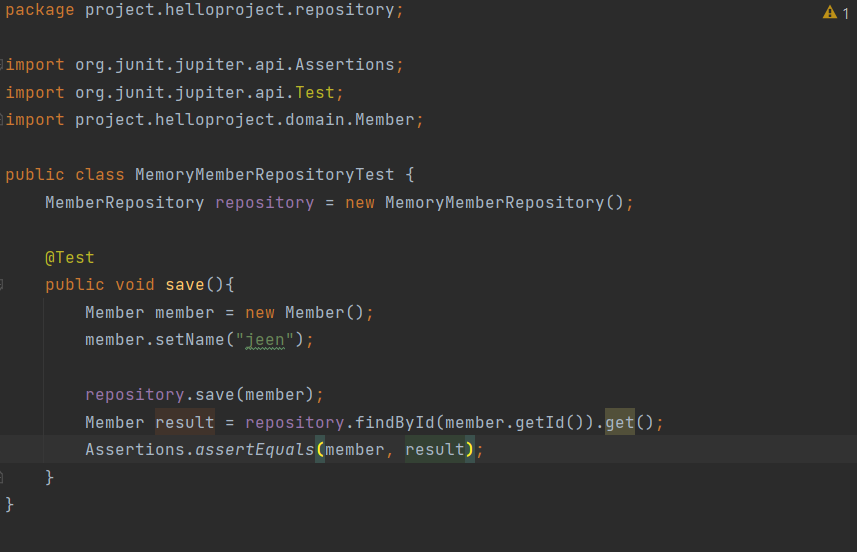 그래서 Assertions.assertEquals(member, result);라고 입력하시면 member와 result가 같으면 알려줍니다.