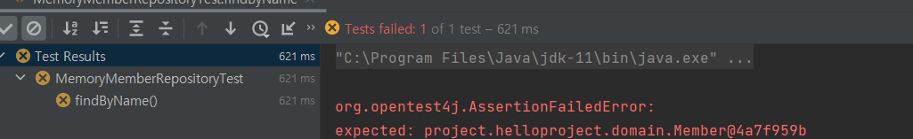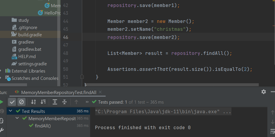 우린 member1과 member2 총 2개를 넣었기 때문에 당연히 이 테스트는 통과해야할 것입니다.