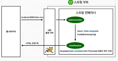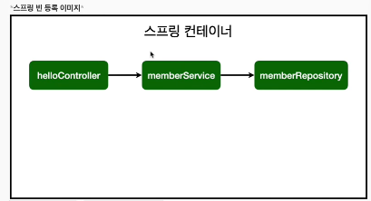 스프링 컨테이너를 보면 안에 내장 톰캣 서버도 있고 HelloController에 녹샌 Bean 땅콩처럼 그려놓았죠.
