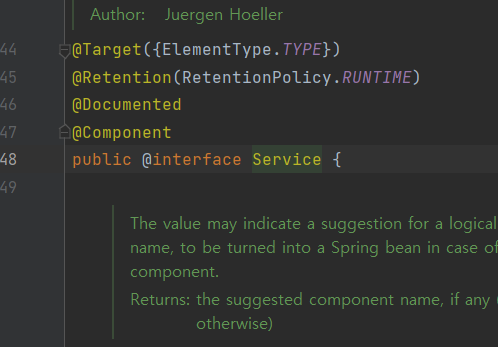 이 서비스라는 어노테이션 내부에는 또 여러가지 어노테이션으로 이루어져 있다는걸 알 수 있습니다.
