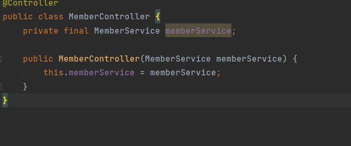 MemberController를 잘 활용하기 위해선 첫째로 MemberService를 가져다 와서 써야 합니다.