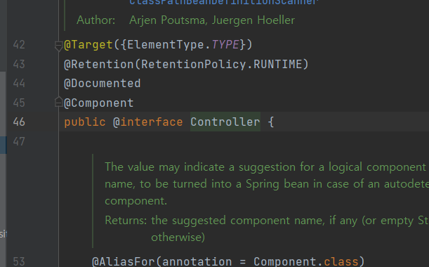그리고 MemberController의 Controller 어노테이션을 살펴봐도