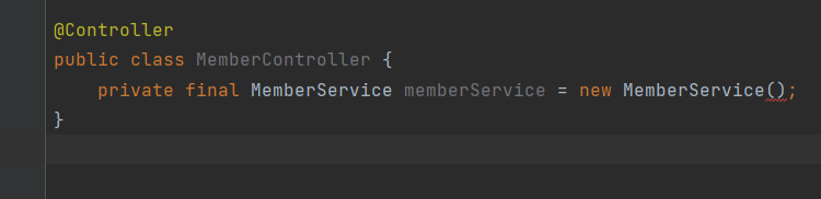 MemberController를 잘 활용하기 위해선 첫째로 MemberService를 가져다 와서 써야 합니다.