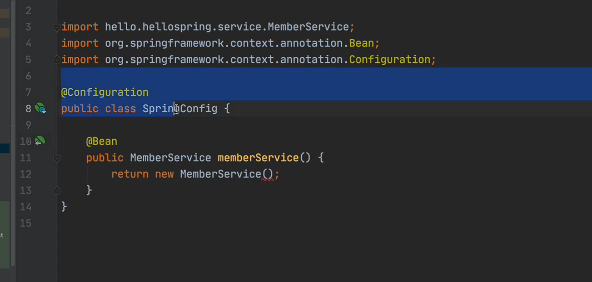 이렇게 하면 빈에 자동으로 MemberService가등록이 됩니다.