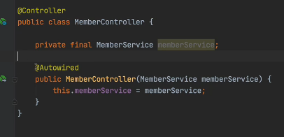 이제 이런거 보면 MemberController 안에 MemberService를 새로 생성해서 주입하고 있습니다.