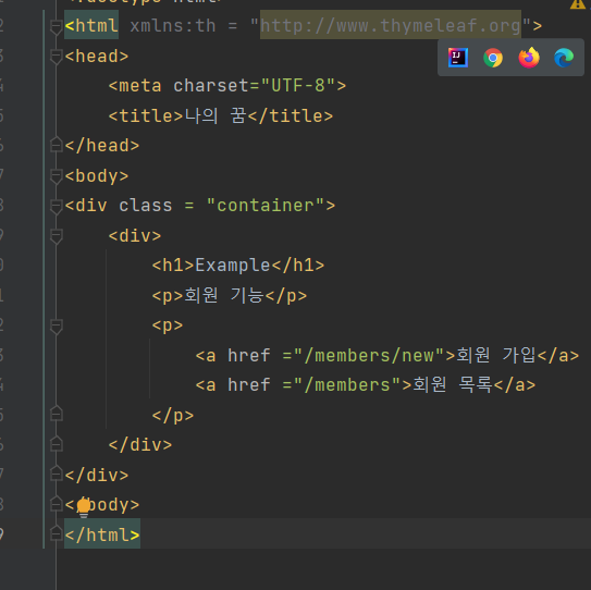 이렇게 templates 내부에 members 폴더를 생성하고 html파일도 만듭니다.
