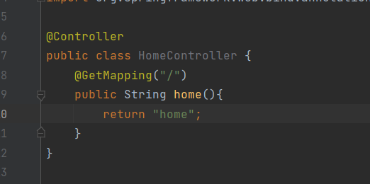 이 Home 화면도 Controller로 만들기 위해 Controller어노테이션을 위에 추가해줍니다.