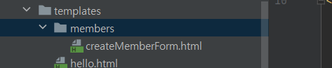 그리고 이 GetMapping을 통해 return 되어 createMemberForm.html을 template에서 찾습니다.