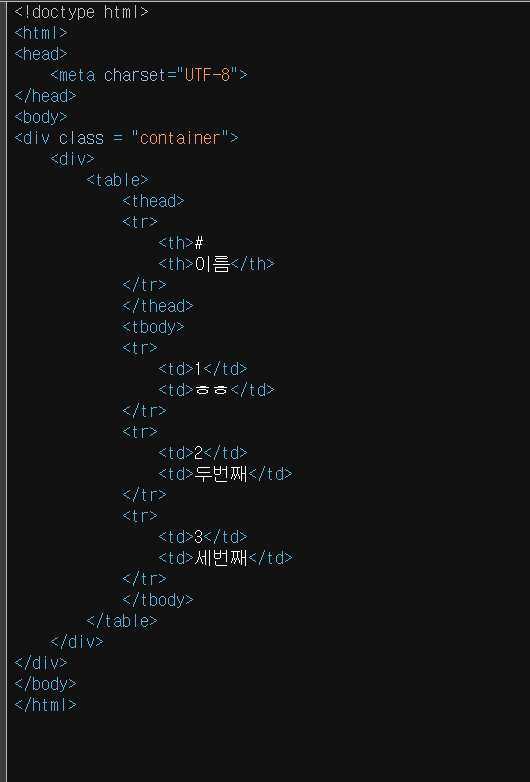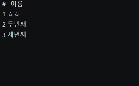 tr은 하나의 덩어리, td의 첫번째 줄은 번호, td의 두번째 줄은 이름이 들어왔네요.