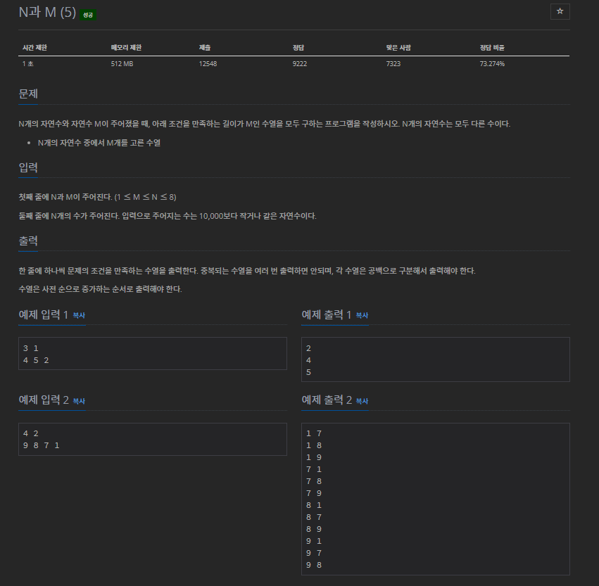 15654번: N과 M (5)