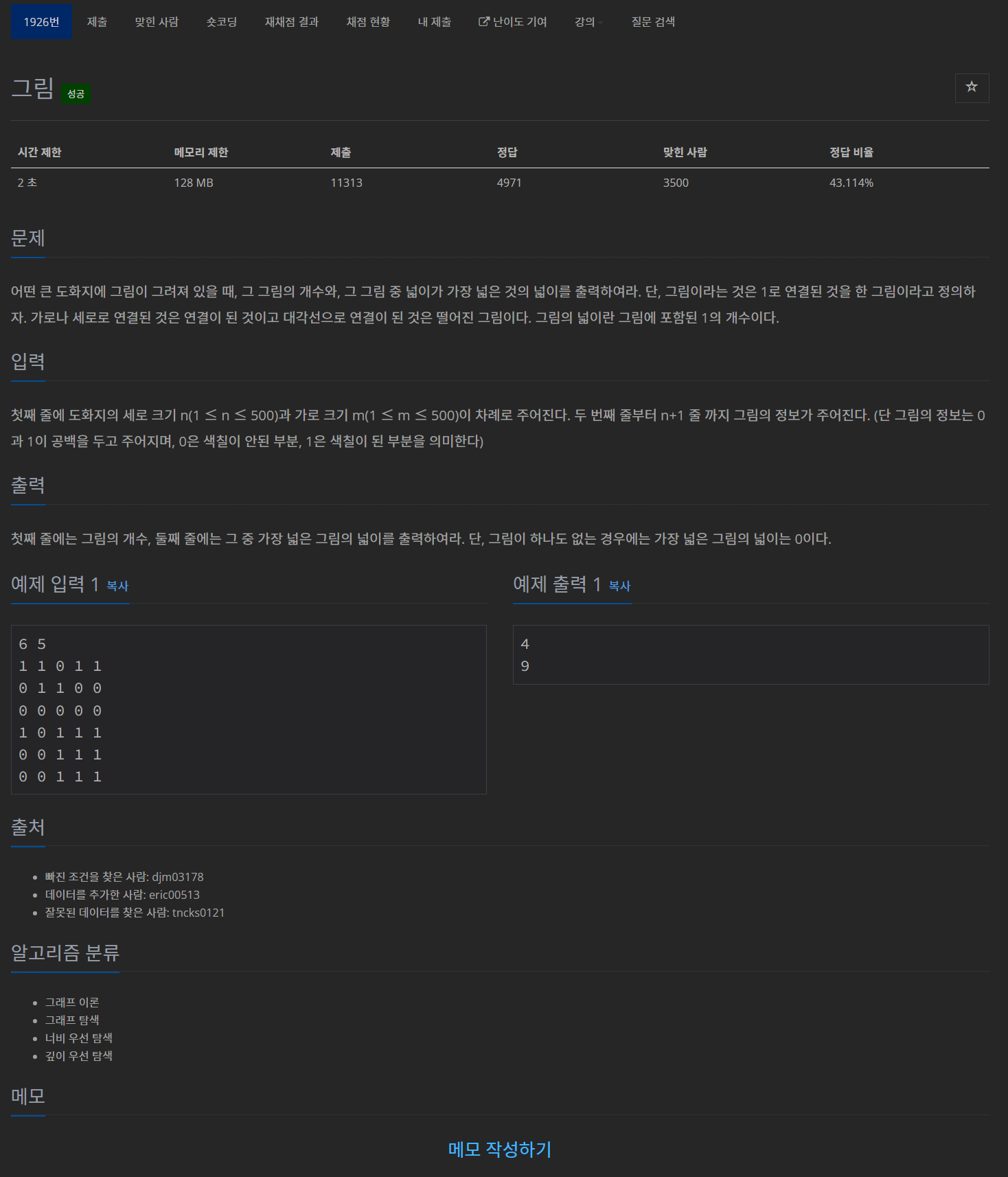백준에서 bfs문제 풀다보면 그림 개수 구하는건 꽤 많이 나옵니다.