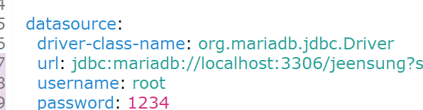 자 driver-class-name은 org.mariadb.jdbc.driver라고 했는데 이것은 데이터 저장 장소를 mariadb라는 db를 사용하겠단 것을 의미합니다.