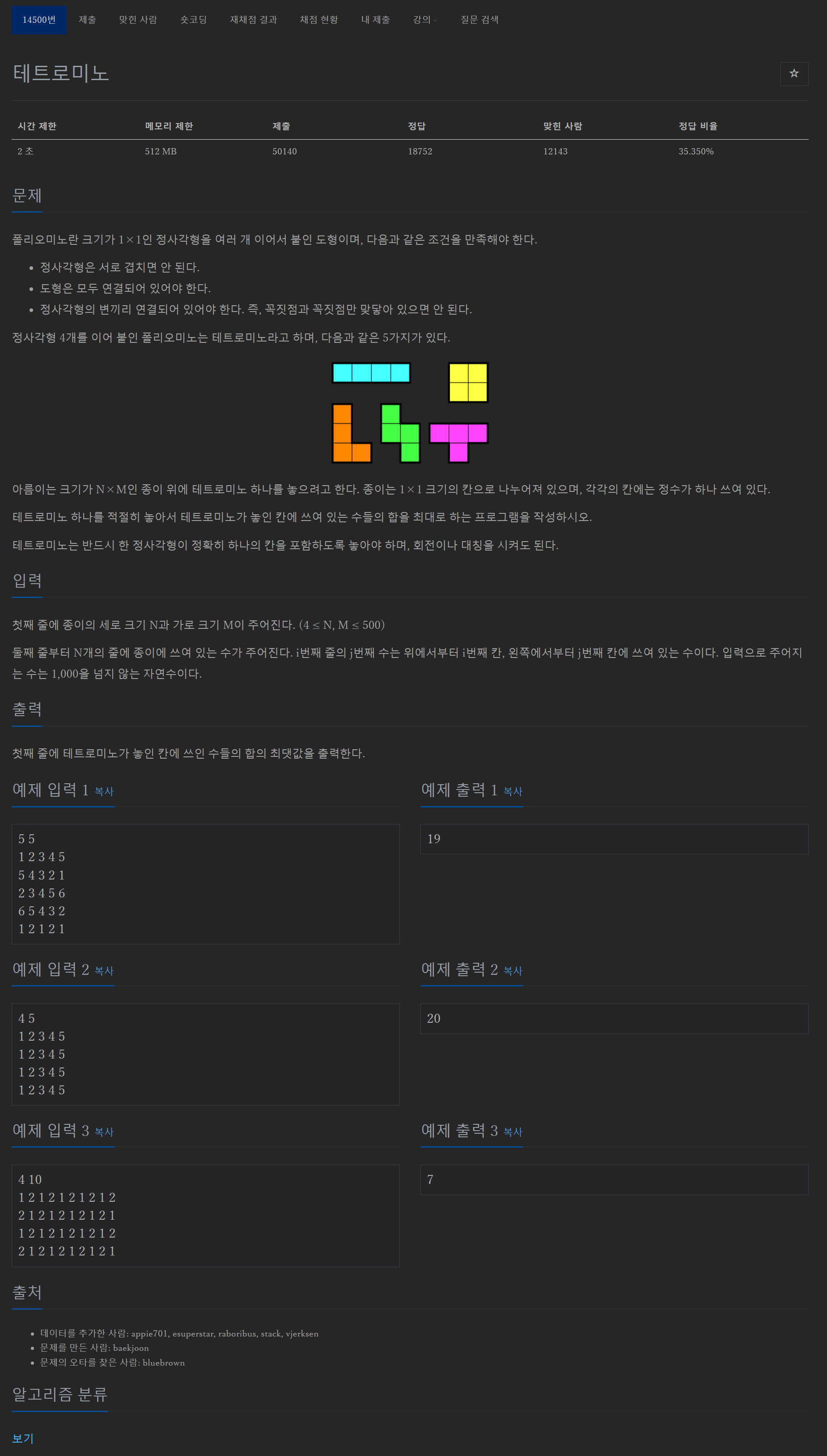 테트로미노는 1x1의 정사각형이 4개 붙어 있는 도형 조각입니다.