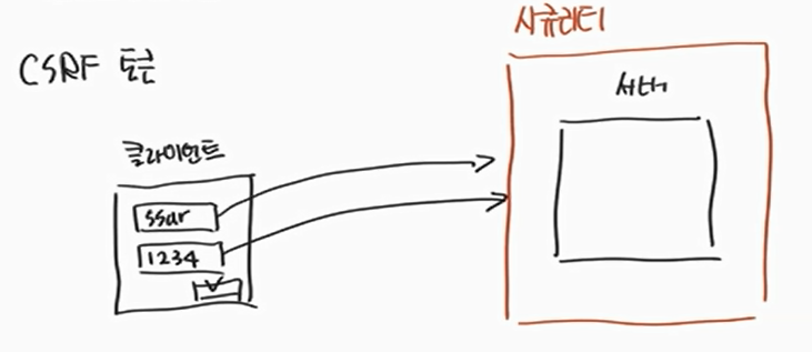이걸 웹서버에 전송을 하면 서버가 이것을 받게 되지만 그 전에 이 서버의 외부에는 시큐리티라고 하는 것이 이 서버를 감싸고 있습니다.