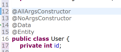저걸 걸게되면 따로 Getter, Setter를 오버라이딩 안해도 되기 때문에 (롬복 라이브러리에 의해) 상당히 편리합니다.