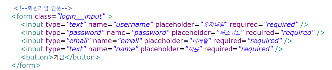여기에 우리는 4가지의 데이터를 담아야겠죠? (username, pw, email, name)