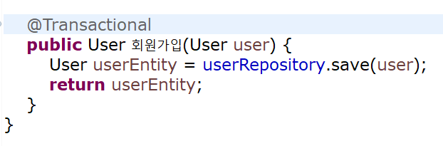 회원가입 메서드 위에 @Transactional을 달아줍니다.