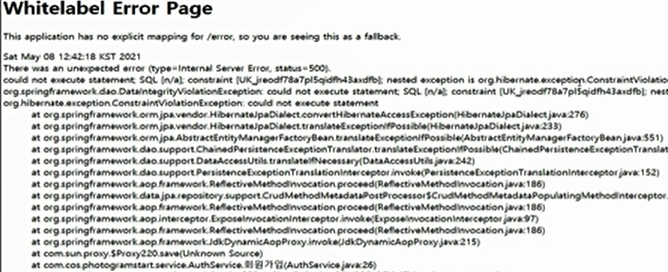 즉, username이 중복이 되어 들어갔기 때문에 500오류가 났다고 해석할 수 있습니다.